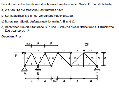 Bei dem Fachwerk komme ich einfach nicht auf die drei Auflagerkräfte, der Rest ist ja klar.