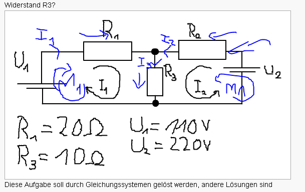 Deine Schaltung hat zwei Maschen. Die Linke nenne ich M1 und die Rechte M2