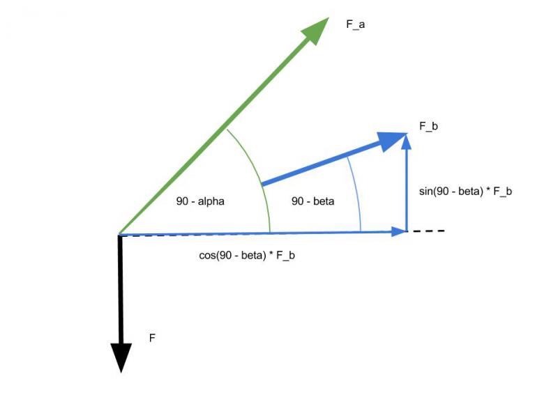 Die beiden Stäbe A und B in jeweils 2 Komponenten zerlegen und dann 2 Gleichgewichte aufstellen.