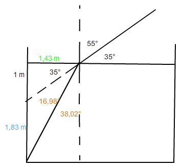 x=tan(35°+16,98°)*1,43 m= 1,83 m