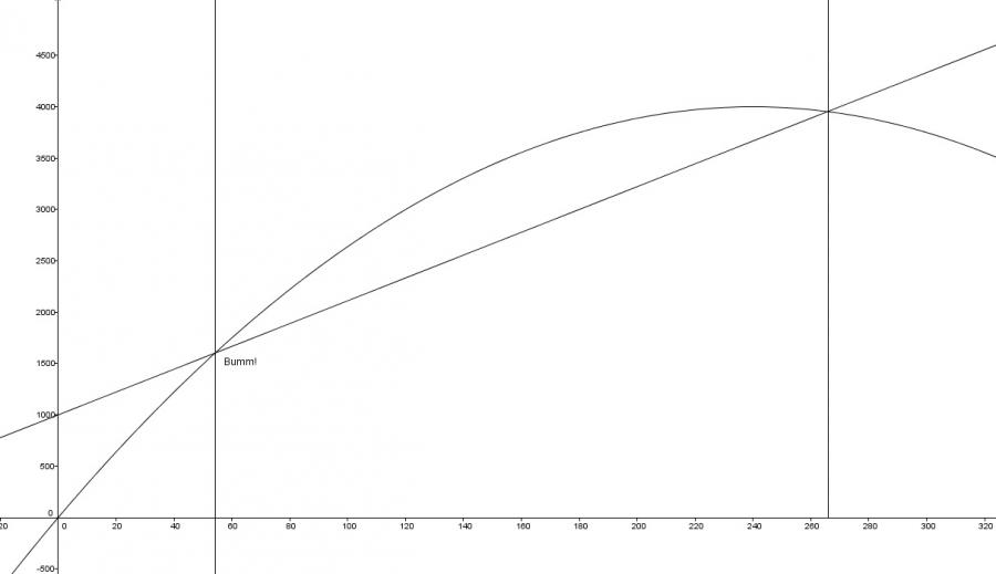 weit gefehlt! es scheppert bereits bei t = 54.2 sekunden, am ort s = vg*t = 40/3.6 * 54.2 ≈ 1602 meter.