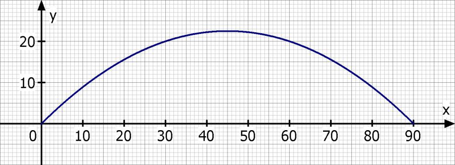 f(45) = - 1/90·45^2 + 45 = 22.5 m